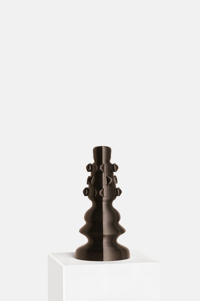 Die 3D-Renderings sind dem nächtlichen Verwandlungsprozess zugeordnet. In 3D-Programmen entworfen, wurden die Formen in PETG-Material gedruckt und als greifbare Skulpturen realisiert. Sie fungieren als materielle Manifestationen des Imaginären und schlagen eine Brücke zwischen digitalem Entwurf und physischer Präsenz.