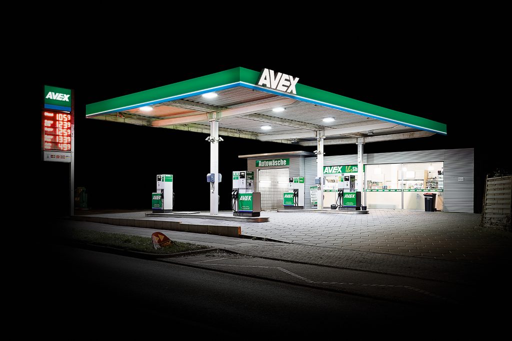 The petrol station – on the edge of urban civilization – is an integral part of our daily locomotion. Placed on the side of the American Highway and the European Autobahn, it is the materialized belief in progress through technology. The petrol station is a media-mythical charged location. In the works of her series ‘Petrol Stations’ Vanessa Leißring removes the petrol stations from their context and isolates them in documental self-luminous photographs. They are focal points of supply: that is what furnishes them with their meaning as a part of an utilization mechanism which is initiated by the human being and comes to an end in technical progress.